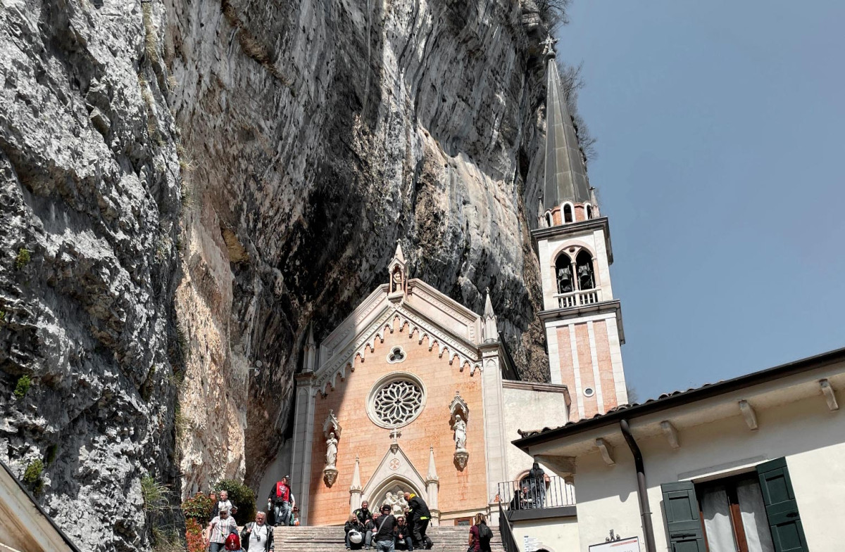 Der Legende nach folgten Jugendliche einem geheimnisvollen Licht am Monte Baldo. Sie entdeckten eine Statue der Maria und stellten sie in eine kleine Kapelle. Doch die Statue verschwand immer wieder und tauchte stets an ihrem ursprünglichen Erscheinungsort auf. Aus diesem Grund wurde das Heiligtum schließlich genau an dieser Stelle erbaut, wo es bis heute Besucher*innen aus aller Welt anzieht.